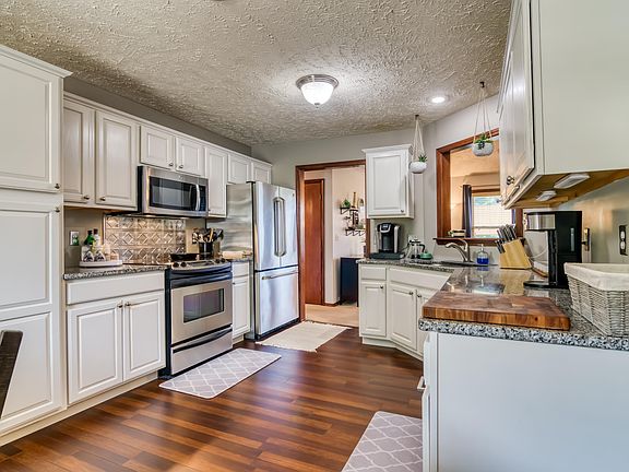 Step inside this roomy 5-bedroom, 3-bathroom home in southwest Springfield! Walk into the main level and find an expanded laundry/mudroom area to drop the shoes, coats, and bags at the end of a long day. Then be greeted by an updated and spacious kitchen featuring stainless steel appliances, granite counter tops, and an adjacent eat-in dining area. Outside the kitchen sets the living area with high ceilings, cozy gas fireplace, and access to the back deck. Off the living area you have the primary bedroom ensuite split from the other two main-floor bedrooms and hall bath for added privacy. Head downstairs to find another large, open living area perfect for entertaining and movie nights, a reading/game nook, two additional bedrooms, full bath, storage area, bar, and John Deere room for all those projects or hobbies you've been meaning to do. Outside you have a massive, privacy-fenced backyard with storage shed and concrete patio, including basketball goal. Other special features include closed-circuit camera system and in-ceiling speakers. For added peace of mind and help to the pocket book, home comes with a radon mitigation system, new A/C unit, and solar panels! This home has it all; come take a look and make it yours today!