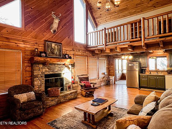 Wonderful True Log Cabin with an Incredible View! Located in the beautiful Serenity Cove subdivision. This is a large 4.6-acre parcel of land, privately situated at the end of a paved cul-de-sac. The cabin features a soaring vaulted ceiling, hardwood floors, hand hewn beams, and log railings. Pretty stone stacked fireplace with a wood mantle in the living room. An efficient eat- in kitchen, and an action-packed game room with large picture windows for enjoying the view. There are two bedrooms and a full bath on the main floor. Upstairs the lofted King bedroom with attached full bath. Plus, there is unique built-in sleeping cubbies for kids. Outside space is also great! You have an awesome view from the wraparound porch. BBQ grill, and a hot tub. Currently on short-term rental program and performing well. This cabin can also be self-managed. In addition, the septic permit shows an additional one=bedroom septic permit was issued in 2002. However, it was not installed.