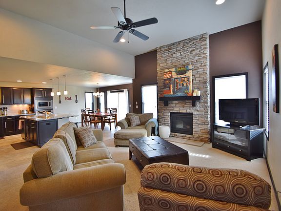 This Brooksville model is perfect for hosting family get-togethers; an open layout features a kitchen with a spacious countertop island that overlooks the 2 story great room, which boasts a floor-to-ceiling stone fireplace. Additionally, the home includes 4 bedrooms and 3.5 baths. Amenities include a room for formal dining or an office, first floor master suite, second floor flex area, mud room with lockers and basement access from the garage. A Wisconsin Focus on Energy home.