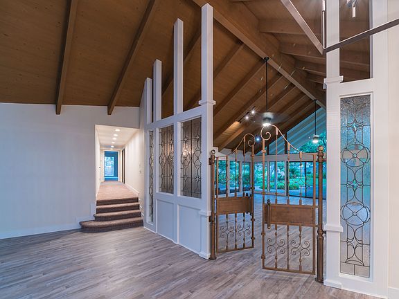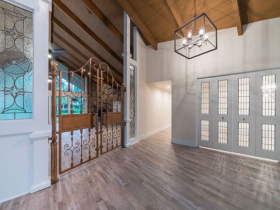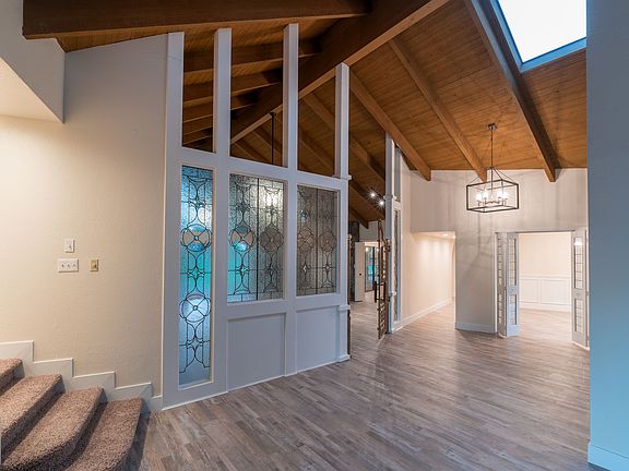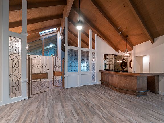Welcome home to your very own resort, located near the Figarden Loop close to Sierra Sky Park and Van Ness area, with many shopping and dining options nearby. Enter through the circle driveway and enjoy the stone exterior, vaulted entryway, and mature landscaping throughout the large front lawn. Inside, notice the luxury vinyl (waterproof) flooring, vaulted and beamed ceilings, beautiful stone fireplace with built-in shelving, and a full bar/wine cellar setup for entertaining. The kitchen is equipped with marble countertops, upgraded cabinetry and backsplash, recessed lighting, stainless steel appliances, and a large center island. There is new paint, light fixtures, and custom glass work (stained glass) throughout the home. Garage features a studio apartment w/attached bath. Outside, you will enjoy a spacious covered patio, a generously sized lawn area with walking paths in between, a koi pond, and beautiful landscaping including mature trees and a bridge overlooking the pond.