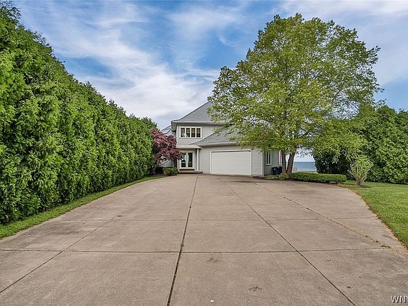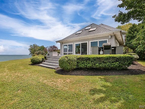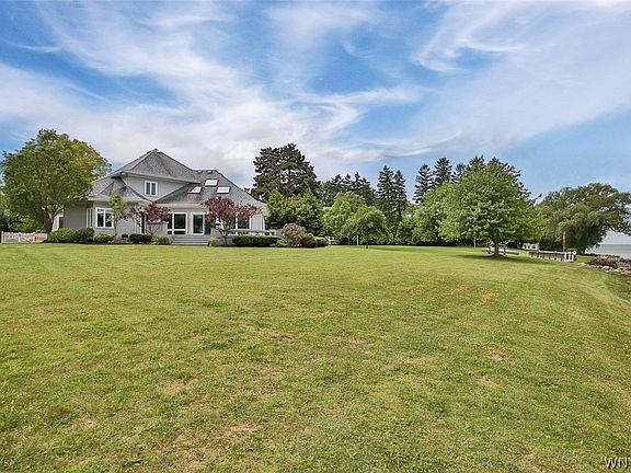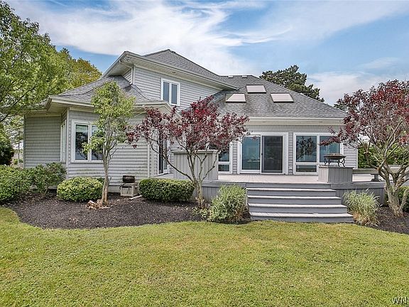 Be prepared to be "Wowed". Those spectacular Lake views can be seen from most rooms in the home! The 20' Domed ceiling has 7 skylights and a custom designed chandelier to match the upper railings. 2 sets of doors lead out to the expansive lakeside deck -This is where you will want to be! The ever changing views to Toronto- Sunsets, Sailboats, and Stars. The first Floor Primary Suite features Hardwood flooring, a gas Fireplace, Jetted tub, & Heated Bathroom Flooring. Fully Applianced Kitchen w tons of cabinets, Huge granite breakfast bar and countertops, hardwood flooring, Dining Area, and, did I mention those views?? The basement has the "Superior Walls" system insulated construction for high energy efficiency and ease of finishing w 9' ceiling height. Additionally, the whole home generator, Rheem Hi Efficiency furnace, and Noritz Tankless water heater provide peace of mind. The property has 119 Ft of lakefront that has RipRap shoreline protection completed 4-5 years ago- Both neighbors also had the work done which helps to protect your property as well. What a Prefect location to launch your kayaks and "floaties".