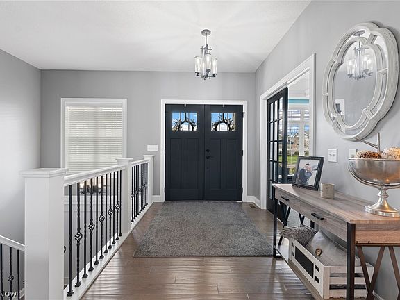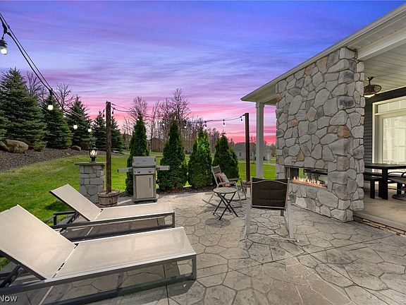 Presenting a spectacular custom-built home that was featured in the Parade of Homes, nestled in the highly-desirable King’s Ridge community within Green Local Schools. You'll feel like you're walking into a brand new build! This efficient Energy Star Certified Home boasts 10-foot ceilings in the great room, kitchen, and dining area, along with luxurious amenities such as Vacuflo, security system, and whole home sound. Step inside to discover a seamless blend of elegance and modern design with ceramic tile, wood floors, and carpet throughout, granite and quartz countertops, Moen antique bronze faucets, and Feiss lighting. The master suite offers a tranquil retreat with a tray ceiling, access that steps out to a stamped concrete patio, and a lavish master bathroom featuring Carrara natural stone, double vessel bowl vanities, and a custom tile walk-in shower with 6 jets. Natural light streams through the home, highlighting the open kitchen design with stone countertops, stainless appliances, and a spacious center island. The first-floor laundry with white cabinetry and the versatile office/bedroom with shiplap wall treatment add functionality and charm. Indulge in the enchanting outdoor oasis with a custom stone fireplace, stamped concrete patio, and covered porch. The finished basement provides endless possibilities with rec rooms, an exercise room, and a spa-like bathroom with a walk-in tile shower. Energy-efficient features include an Insulated Concrete Form Foundation and R-23 insulation, ensuring savings on utilities. Additional highlights include a huge, clean, 3-car garage, beautifully landscaped yard, coffer ceilings, custom wood built-in cabinetry, arched openings, transom windows, whole home sound system, and Schalge levered door handles. Why build when you can buy and have it all right here! Don't miss the opportunity to call this exquisite property home and experience luxury living at its finest.