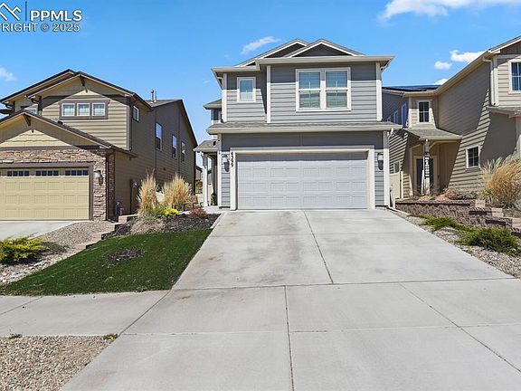 Come see this meticulously maintained Incredible home near Marksheffel Road with quick access to all local military bases, shopping, dining, entertaining and close to Powers corridor. On the main level you will see a bright and open floor plan with a gorgeous color scheme, custom lighting through out the home, large kitchen with stainless steel appliances, huge stainless sink, big island and all soft close cabinets, a breakfast nook that leads out to a covered patio onto your professionally landscaped back yard. Upstairs you will find a large family room loft, main bedroom with an en suite bath, double vanity sinks, walk in shower and closet , 2 other bedrooms with another full bathroom and a convenient laundry room. The garage has lots of built in shelving for all your storage items! All appliances included and home owner paid to have all home surge protection, ring cameras outside stay. Come see this home,!
