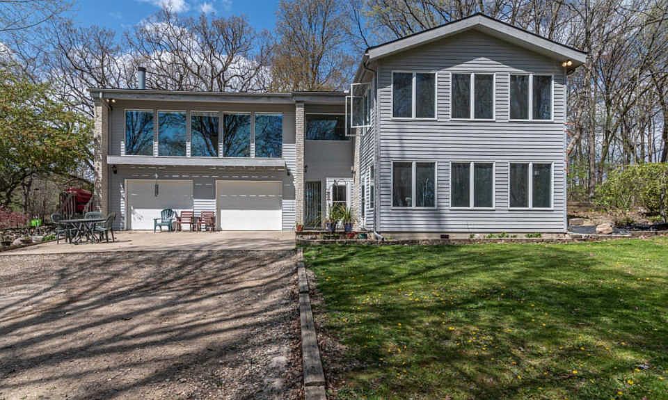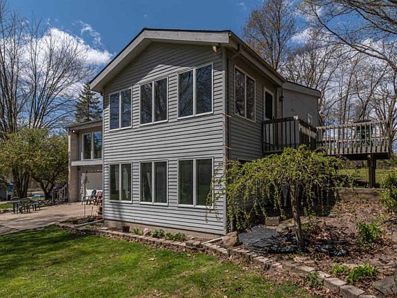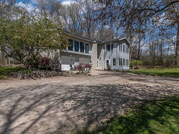 Sprawling Three Bedroom, Three Bath Raised Ranch with Finished Walkout on Picturesque 9.14 Acre Setting with Views of Wildlife and Nature from All Windows. Breathtaking Great Room with Soaring Ceilings, Fireplace with Oak Mantel and Wall of Floor to Ceiling Windows to Take in the Panoramic Views of the Stunning Grounds and Pond. Spectacular Master Retreat with Vaulted Ceiling, Full Bath with Jetted Tub and Additional 13.5x18.5 Sitting Room with Wall of Windows with Jaw Dropping Views from All Windows. Finished Lower Level Features Bedroom and Full Bath which would make a perfect Guest Suite with Private Entrance and 13.5x18.5 Sunroom Area. Additional Features include Bright Kitchen with White Cabinets and Vaulted Ceiling, Formal Dining Room with Newer Laminate Floor and Sliding Glass Door leading to Deck,2nd Bedroom Features Vaulted Ceiling, 30x40 Heated Pole Barn with 10 Foot Ceilings, Gorgeous Pond,90%+ Furnace.2.5 Car Attached Garage, Security System.