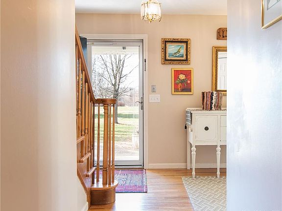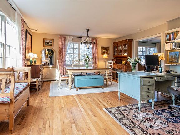 This timeless colonial is perfectly situated on nearly an acre of idyllic flat property with over 3000 square feet of living space. Conveniently located to several shops, restaurants, I84 and neighboring towns. Enter through the warm and inviting foyer. Main level has a large dining room with added space for a sitting area as well. Living room with new sliders to sunroom (currently music room) with skylights and outdoor access. EIK kitchen with center island cooktop, double ovens, perfect for entertaining. Open to a large light-filled family room with vaulted ceilings. Corner brick wall has a chimney hookup and flue in place just waiting for your desired fireplace layout. New sliders lead to a patio and lovely fenced backyard with shed, perfect for play and pets. Two staircase options to the upstairs level. Enjoy the cozy loft area which overlooks the great room with built-in shelving and desk areas, perfect for an at-home office or study. Head down the hallway to 4 spacious bedrooms including a master suite and 2 updated bathrooms. Added storage in the pull-down stair attic. Natural light drenches this well cared for home with hardwood floors, spacious rooms and updates throughout. 2-car garage with ample space for bikes and storage. Come and experience this amazing home with a spectacular floor plan.