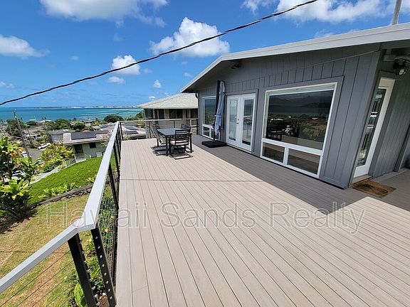This spectacular rental property boasts stunning ocean and mountain views, making it the perfect place to relax and unwind. The home features two master bedrooms with massive walk-in closets, two standard bedrooms, and a total of 3.5 modern bathroomsproviding plenty of space for you, your loved ones, and all your home essentials. A second kitchen enhances your ability to effortlessly entertain in any of the venues around the home. The spacious interior is designed for maximum comfort, with plenty of natural light creating a warm and inviting atmosphere. The upstairs master bedroom is a luxurious retreat in itself, complete with high ceilings, split AC, two private lanais, and a bathroom with dual vanity, bathtub, and shower. Embrace indoor/outdoor living at its finest as you dine, watch an evening sailing regatta, relax, or entertain guests from one of three incredibly spacious lanais while taking in the breathtaking views. With a carport, long driveway, and additional street parking, you'll have plenty of room for multiple cars. The home is also equipped with 32 solar panels to keep your electric bill LOW! Located in a desirable neighborhood, this property offers instant access to H-3, allowing for easy and enjoyable commutes to Pearl Harbor, Hickam, and the airport in as little as 20 minutes. You're also just minutes from Kailua Beach, Kaneohe Marine Corps Base, several shopping centers, and a variety of dining options. Whether you're looking for a peaceful retreat or a home perfect for entertaining, this Kaneohe gem is sure to exceed your expectations. Don't miss the opportunity to experience this breathtaking piece of paradise!