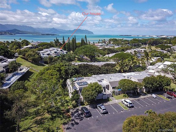 Fantastic Location! Nestled on the borders of Kailua and Kaneohe, this property is minutes to world-famous Kailua Beach, and beautiful Kaneohe Bay. Kaneohe Marine Corp Base is close-by and easy access to the H3 highway puts Downtown Honolulu, Pearl Harbor, Hickam Air Force Base and Honolulu International Airport a short 20 minute drive over the gorgeous Koolau Mountains. This pristine complex is on 33 acres and has a lot of open space with resort-like amenities including a salt water heated pool and clubhouse. This is a wonderful place to call home! This home includes: Newer kitchen, maple cabinetry, stainless steel appliances and granite countertops. 3+ bedrooms /2 full bath. Extra large master on main floor with walk in closet. Two other bedrooms with wall to wall mirrored closets. Extra room that can be used as 4th bedroom, office or playroom. New windows, doors and screens. Newly sealed large outside lanai that looks out into mountains with unobstructed view. Additional huge shared lanai right outside private garden access. Vaulted ceilings in living room. Cool house by the position and through breezes. Small back garden that is grassed and private. Laundry room with washer/dryer. Salt water pool and clubhouse with kitchen and bathrooms, newly upgraded. 33 acres of lush walkways for dog walking and jogging on complex. Across the street to stunning Kaneohe Yacht Club with sailing and water sports galore. Easy access to H-3, Pali, Kailua or Kaneohe town. Quiet and friendly neighborhood. Lime and mango trees on property. Award winning Kailua school district. Owner pays for trash, water and sewage. Tenant pays for electricity and cable.