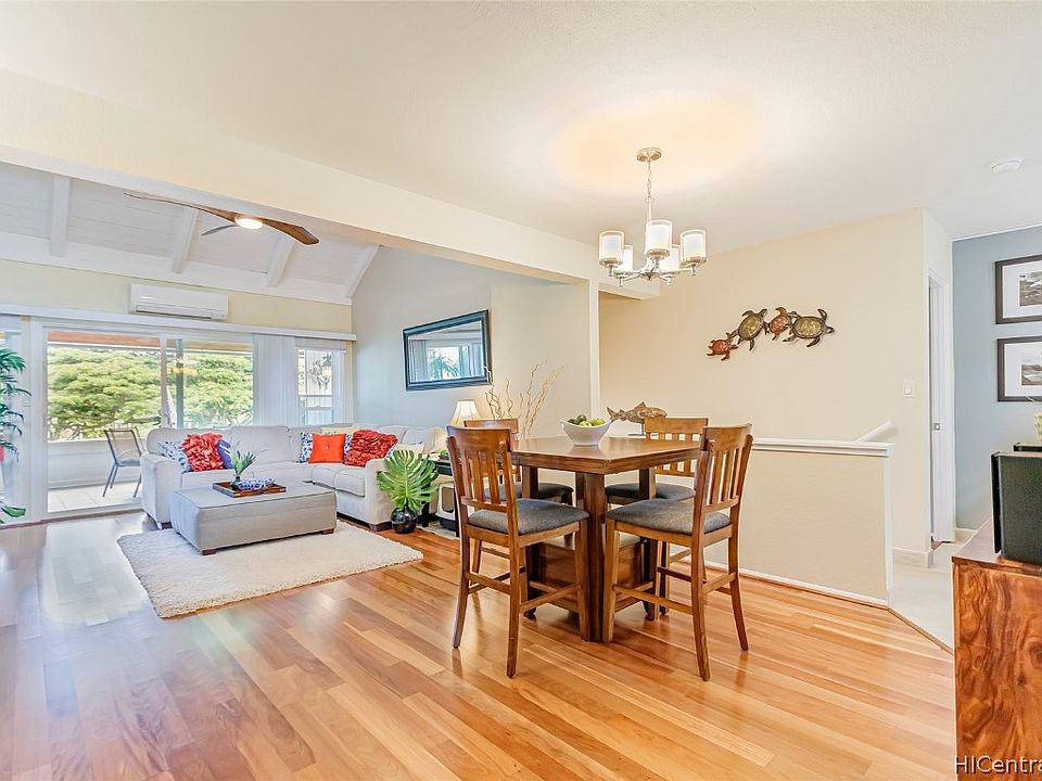 Completely remodeled top to bottom including: Covered lanai with windows (park and ocean view - not neighbors!), engineered hard wood flooring, vinyl windows, new doors, new kitchen, bathrooms remodeled, Split AC in each bedroom, Owned 16 panel PV (net metering), solar water heater, modified and added storage room/closet, landscaping in yard, individual stair entry (not shared), under counter beverage refrigerator, new paint etc. etc. etc. Must see this perfect unit. This was to be owners forever home, but family circumstances require heading back to the mainland... their loss, your gain!