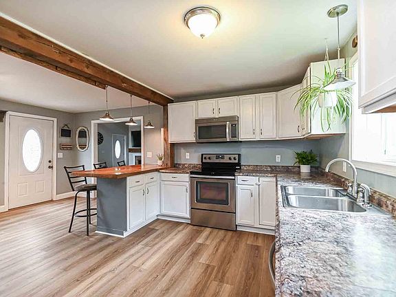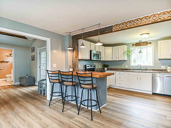 Classic cape (c.1790)— where antique charm meets modern convenience! This centrally located home exudes vintage character, while thoughtful updates made by the owners combine the best of the old with the new. Step right into the heart of the home: a generous eat-in kitchen with a gorgeous natural wood center island. The kitchen’s corner pellet stove creates a lovely ambience for cozy dinners with loved ones. The adjacent living room is both comfortable and spacious, with high ceilings, beautiful exposed beams, and a fireplace. Off the living room, you will find a full bath with double vanity and granite countertops. Rounding off the first level is a bedroom with a generous walk-in closet. The front staircase leads to a versatile room that would be a lovely space for an office or guest bedroom. The back staircase off of the kitchen leads to a spacious primary bedroom with a generous walk-in closet. A large, level backyard surrounded by trees is perfect for hosting summer barbecues with friends, family, or neighbors or simply enjoying a quiet evening under the stars by the fire-pit. The backyard offers endless possibilities for outdoor entertainment and relaxation. Beautiful hiking trails, ponds, and opportunities to appreciate NH’s natural beauty are just minutes away. Close to commuter routes, shopping, and other conveniences, this home brings the best of NH to your doorstep! Delayed Showings: Open House, 6/22/24, 11-1PM, 6/23/24, 11-1PM