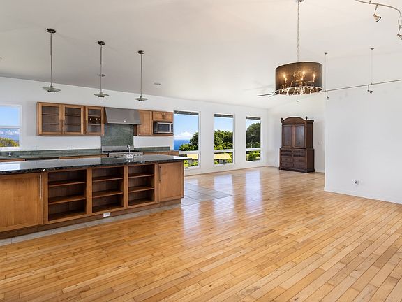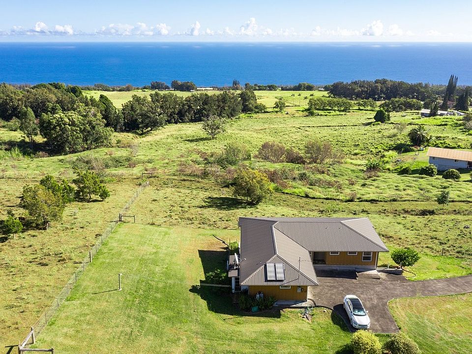 This welcoming home was designed and built for a local artist, who chose this lot for its views! The home is located in sunny Kalopa and the State Park is just up the road and the country town of Honokaa is just 5 minutes away. Large picture windows front the great room, taking in pasture and the big blue Pacific beyond. A true chef's kitchen is a main feature, with a large gas stove, a walk in pantry, and beautiful granite countertops on the oversized island. Upstairs the master bedroom with its large and airy bathroom along with a powder room elegantly complete the top floor. Downstairs finds two more bedrooms, an office or den area, and another flex space that was used an artist's studio and offers a lot of possibilities. This property is fenced and gated, with a little over an acre that feels much larger due to it being surrounded by larger parcels. A two car garage with laundry area and half bath is attached to the home. Kalopa on the Hamakua coast is a favored neighborhood by many, hiking trails are right up the road and Waimea is a short 30 minutes away.