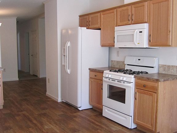 BRAND NEW! This beautiful two bedroom home has two full baths a dining room and an eat in kitchen. The kitchen is bright and spacious with oak cabinets and plenty of counter space. The dining room is open to the living room, both with a bounty of natural lighting. Master bath has double sinks and a sizable walk-in shower. The large master bedroom has a walk-in closet. The good size second bedroom has a double closet. A traditional tub/shower combination and a solar tube, to bring in natural lighting, are part of the main bath. There are attractive ceiling fans in both the living room and master bedroom. A 12' x 16' sun room is perfect for relaxing and watching the seasons change. This home has central A/C, a shed and an extra long carport. Landscaping included. Share is not included in the price.