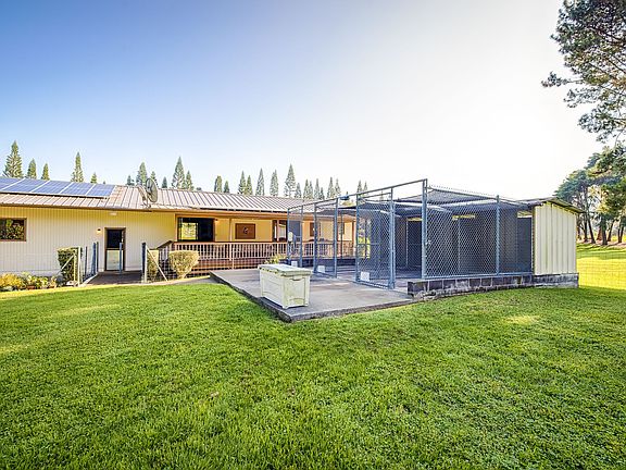 Up country Kalopa estate. Come and enjoy the comfort and privacy of this meticulously maintained, three bedroom, 2 bath home with a large walk-in shower in the master bath on 5+ perimeter and cross fenced, green pastoral acres located within a short walking distance to Kalopa Native Forest State Park and Recreation Area.This home also includes a grid-tie Photovoltaic system and an on-demand propane hot water system that provided greatly reduced electrical costs. There is a large spacious covered lanai, fire pit and outdoor shower.The fully enclosed 784 s.f. garage is completely finished with an electric door opener, substantial and generous storage areas, a camera security system with video recorder, dual County water service and a 5,000 gallon water catchment system. Also included is Hawaiian Telephone DSL Internet service and in-house and yard Wi-Fi coverage.The grounds include two pasture areas with two sheep shelters with water catchment systems for the animals, a water service line to the back of the property, a packing table, a picnic table with a folding umbrella. Special features are three professionally built deluxe 7 foot by 21 foot dog kennels with a 6,500 s.f. fenced exercise yard.Not included in this listing price, but available for sale are: Additional grounds maintenance equipment and tools which includes a Massey Ferguson 1428 V tractor with a mid-deck mower, front bucket loader and a Toyota Pickup Truck.