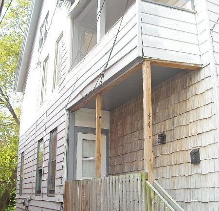 Exterior Features: Exterior: Two story white building with grey trim is sitting on a fair sized lot, appears to be a side by side duplex, curb appeal is decent, overall condition seems to be alright, no extensive damage to the exterior. Siding: Wood/vinyl exterior wall seems to be in fair shape, has some minor blemishes in siding but looks healthy. Windows: Some have been boarded. Soffits and Eaves: Intact. SF: (Lot) 4760. SF: (Home) 2600. Patio/Porch: Wood patio in rear of home looks to be in good shape. Roof: Asphalt shingle; seems to be in decent condition, no major issues. Driveway: None. Interior Features: Interior: Is a two unit duplex, paint is peeling in some areas, floors need some refinishing, spots in wood floor needs varnish, overall appears to need work but is in decent shape. Living Room: (1) Paint is peeling on white walls, wood floors look fair, overall room is in decent shape (2) White walls have some blemishes, grey carpet needs cleaning, a couple holes in the ceiling, looks alright. Dining Room: None. Kitchen: (1) White walls, cabinets and sink are intact, vinyl floor looks ok, room seems to be in fair shape (2) Cabinets, counters, & sink are intact, vinyl tile floor looks alright, room needs cleaning but is in decent condition. Bathroom: (1) Wood floor looks ok needs cleaned, white walls, toilet, tub, & sink are in place, looks in alright shape (2) Tile floor, white walls & trim, toilet, sink, & tub are intact, looks decent overall. Bedroom: unit 1: (1) white walls, hardwood floor is in good shape, room looks nice (2) White walls, grey vinyl floor, walls have some blemishes but looks alright (3) Wood panel walls & white trim, wood floors, is in fair condition. Unit 2: (1) Blue walls & white trim, brown carpet needs cleaning (2) Wood panel walls with white trim, wood floor has been painted grey, ceiling tiles are coming down, room needs cleaning (3) Pink walls, grey vinyl floor is slightly damaged, walls could use some refinishing, decent overall. Basement: is of brick construction. Mechanics: Hot water heater & furnace. Garage: None.