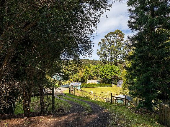 Nestled amidst the slopes of Mauna Kea in Kalopa Mauka, this extraordinary property offers a rare chance to own 5.94 acres of breathtaking terrain. The centerpiece is a charming two-bedroom, two-bathroom Main House featuring a spacious three-car garage with a dedicated work area and a secluded outdoor shower. Its wrap-around lanai, one side screened and the other transformed into a solarium with open skylights, illuminates the interior adorned with real hardwood floors and abundant windows. Off-grid living is made seamless with an exceptional solar setup boasting 18 panels, lithium battery backup, Outback inverters, and a backup Honda generator. Water needs are met by a 10,000-gallon catchment tank with modern filtration and there is also access to county water if needed. Additionally, high-speed internet via Hawaiian Telcom Fiber ensures excellent connectivity.