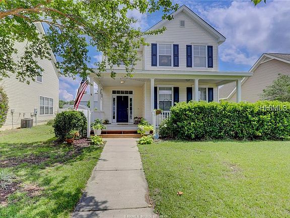 Centrally located to Old Town Bluffton & nearby community pool/playground, this 3 bed, 2.5 bath offers beautiful water views of lake Isabelle from your spacious front porch. Mature landscaping welcomes you into a large 1,852 sq/ft well-maintained interior w/wood floor foyer, dining room, open kitchen & light 'n bright living room. Upstairs features two guest bedrooms, full bath, oversized owners suite with walk-in closet & recently painted en-suite bath w/separate tub & shower. Large rear yard with patio, additional parking & storage shed. One-Year Home Warranty included.