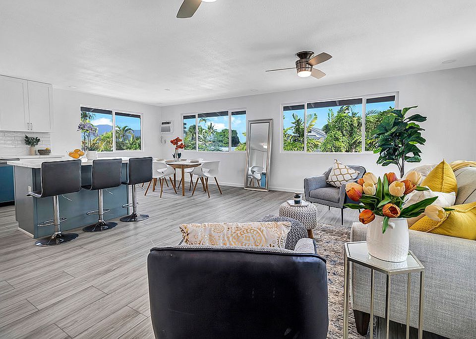 Coming soon! This beautifully renovated 5 bedroom, 3 bath home has lots of natural light and a layout designed for multigenerational living, guests, or rental possibilities. Upstairs offers 3 bedrooms, 2 baths, an open concept kitchen, living & dining areas, and peek a boo ocean views. The downstairs offers two bedrooms, a full bath, living area, wet bar and a second entrance. All new modern features including Quartz countertops, subway backsplash, shaker cabinets, new appliances, LVP flooring, AC’s, ceiling fans, tiled baths, and upgraded electrical & plumbing. The carport has a large storage closet, laundry area, and room for water toys. Ample yard space surrounds this home providing plenty of room for parking, boat, a pool, or possible ADU -verify. Kailua/Kaneohe living offers a healthy lifestyle and an array of watersports with two and a half miles of sandy beach at (nearby) Kailua beach, and a 3 mile long sandbar in Kaneohe Bay. Shopping, dining & award winning schools nearby and easy access to H3 freeway to KMCAS, JBPH-Hickam. **Landscaping of grass and gravel is currently in progress. Exterior picture is enhanced and may differ from actual.