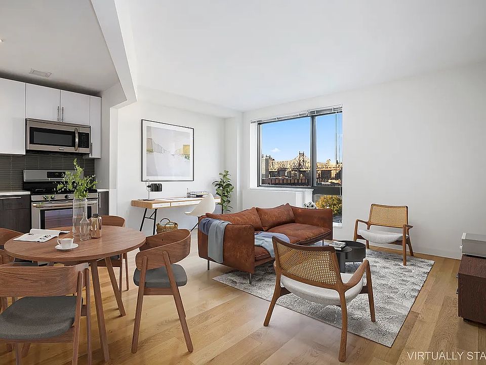 Amenities at the building include a landscaped courtyard, state of the art fitness center, central laundry room, bike room, package room, a live-in super, private storage, and a virtual doorman. The building is accessible via the E, G, M, and 7 train lines along with the LIE. It is also conveniently located just steps away from the Gantry Plaza State Park, Murray Park, along with all the major restaurants, shops, and supermarkets that LIC has to offer.