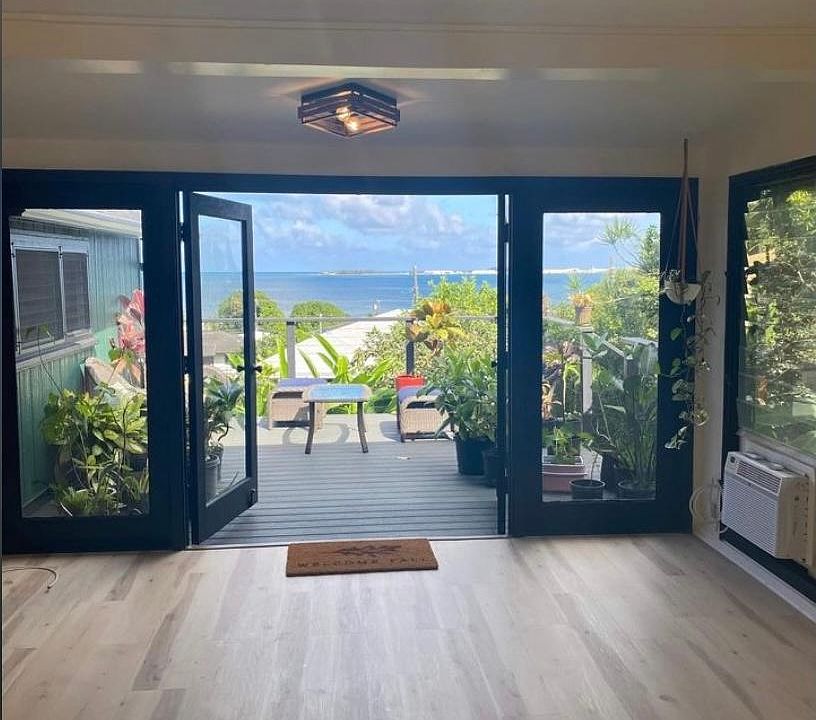 NEW RENOVATIONS Beautiful Private 2 Bedroom 1 Bathroom Home With Large Deck Over Looking Kaneohe Bay PETS OK!! ALL UTILITIES INCLUDED AC WI-FI ELECTRIC CABLE & WATER!! OCEAN VIEWS THROUGHOUT THE HOME!! Private yard with direct access to Friendship Garden Hike!! 5 MINUTES FROM MCBH & KAILUA BEACH COVERED GARAGE WITH HOME GYM & PARKING !! LARGE HOME & Bathroom has double vanity floating bench bidet and led lighting !! Message me for a private showing !! ALL UTILITIES INCLUDED WATER CABLE WI-FI ELECTRIC AC & LANDSCAPING!! Covered carport with home gym and two assigned stalls !!