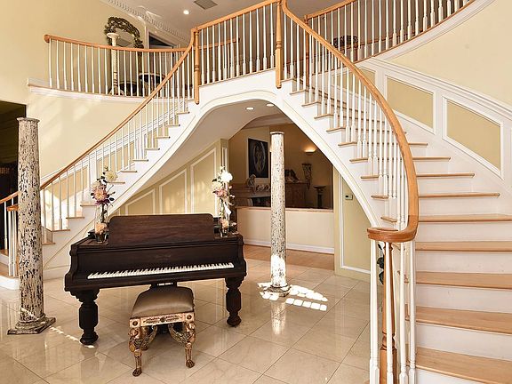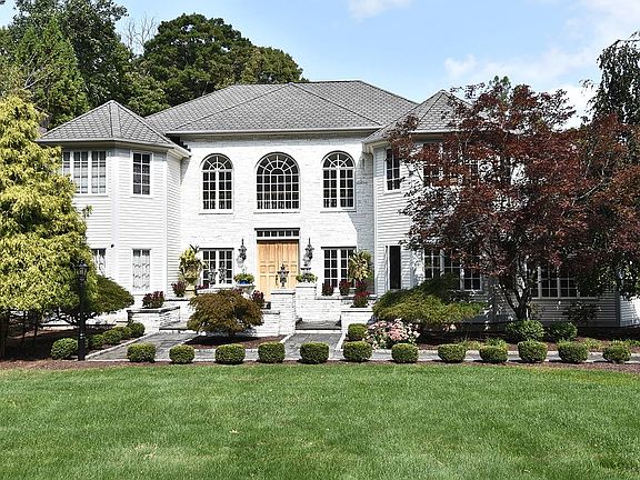 Stately brick Colonial with a Contemporary flair. This home has been built with the finest materials and amazing details throughout. Highlights include a columned entry with elaborate moldings and stonework, much of the limestone has been specially imported for this home. The well designed open floor plan is perfect for entertaining. The dream kitchen opens into the columned Great Room with 14ft ceilings, a limestone fireplace, floor to ceiling windows and an open gallery to the second floor. The adjacent Family Room boasts a coffered ceiling, limestone fireplace, a full wet bar and guest bath. There is a first floor guest suite with full bath and French Doors leading to the pool and spa. The 4 bedrooms all have interesting architecture. The Master has a sitting area with fireplace, walk-in closet and luxurious bath. It offers access to a home theater with stadium seating. The expansive Lower Level is walk-out and has a kitchen, full bath and gym. This space would be perfect as a home office or in-law apartment. The private country club setting has a salt water pool, waterfall and a pool house with kitchen and bath. There is also a regulation sized basketball court, a stone barbeque and terraces for relaxing outside. The perfect venue for entertaining or working from home!