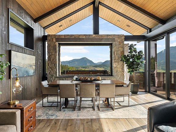 Perched gracefully above the burgeoning Town of Silverthorne, this luxurious haven stands as a testament to the artful fusion of nature and refined living. An accolade-garnering masterpiece and architectural marvel, 44 Aerie Drive was meticulously envisioned and crafted by the collaborative genius of Team Salt and Nathan Glassman. As you step into this extraordinary dwelling through a bespoke pivot door, you're greeted by a stunning column of Mountain Ash Granite that guides the arrangement of rooms along a central, unifying axis. Infused with an abundance of natural light, this home is a symphony of elements, seamlessly blending a captivating rock water feature, a thriving living roof, and expansive vistas that stretch over the Tenmile and Gore Ranges. Here, an unparalleled living experience unfolds, where the boundary between home and nature dissolves into a harmonious coexistence. Yet, in this quest for symbiosis, not a single nuance of a premium living experience has been compromised. The kitchen is a testament to this, adorned with a selection of top-tier Thermador Appliances thoughtfully customized with the richness of Bubinga Wood and Rustic Walnut. This culinary oasis not only elevates the art of hosting and entertaining but seamlessly extends into an outdoor living space, blurring the lines between culinary creativity and the great outdoors. Beyond the doors, an ensemble of patios, decks, and a serene courtyard extends, offering nearly 1100 sq. ft. of additional space for relaxation and entertainment. The vistas from these vantage points are vistas of dreams, a visual orchestra that encapsulates the very essence of Colorado's beauty - Tenmile and Gore Range views that unfold like living artworks against the horizon. Home Completed in 2021.
