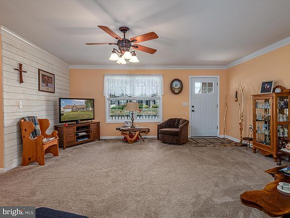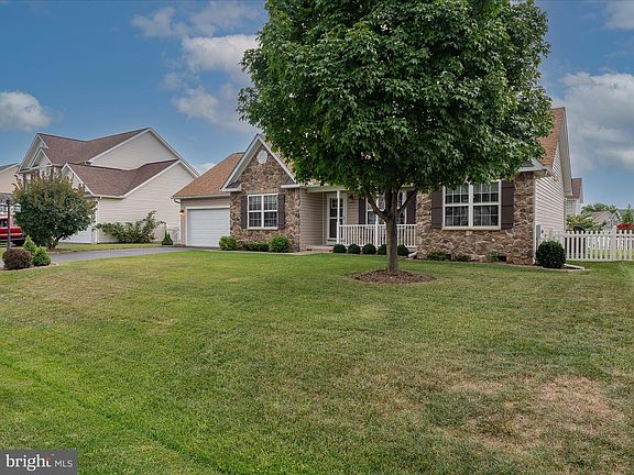 This lovely stone-front rancher features 3 bedrooms and 2 full baths on nearly a 1/4 acre lot. You have a nice level driveway leading to your 2 car garage to keep your cars, and you, out of the rain. The large covered porch is a great place to enjoy your morning coffee or evening glass of wine. Inside you have a spacious foyer with easy care vinyl floors. Beyond this you have the lovely living room with carpet, crown molding and shiplap detail. It is open to the dining area with laminate floors, crown and picture molding. Features a decorative light fixture to define the space. The galley kitchen is set up for optimal efficiency. Features oak cabinetry and quartz countertops. All appliances convey, including fridge with ice in the door and a smooth cooktop. The kitchen opens into the two car attached, garage. It is dry walled, insulated and heated, includes additional wiring, pulldown staircase for storage above and a rear door to the backyard. Down the hall you have two generously sized bedrooms with carpet and ceiling fans. The hall bath features vinyl floors, 5 ft acrylic tub/shower combo, and 2 ft single bowl vanity for ample storage. The large primary suite features carpet, tray ceiling, crown molding, and ceiling fan. You have a walk-in closet and a private ensuite. Ensuite features 5 ft acrylic tub/shower, 5 ft double bowl vanity with center drawers, and a large linen closet for plenty of storage. You'll have everything you want and more in this suite. Outside you have a large, rear deck. It's perfect to host your summer gatherings. There are stairs down to your rear yard. It is level and lush with grass and fully fenced, bring the pups! Fence is maintenance free vinyl. The yard includes two cherry trees, and a maple tree, and a spruce tree! This home has so much to offer. Call for more info today!