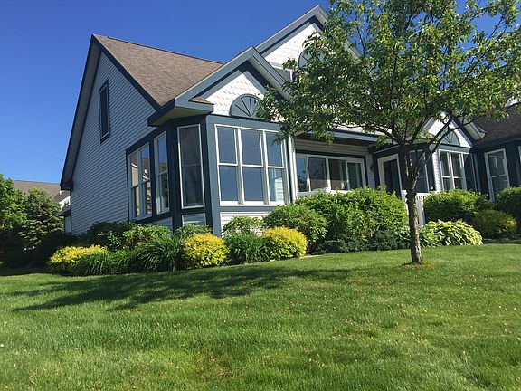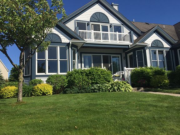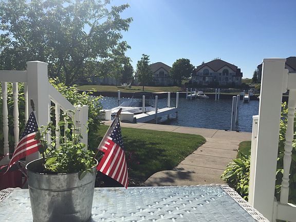 This casual, elegant beach condo is the definition of coastal cool. Meticulous yet playful elements partner for a universal and timeless appeal. The first floor features an open concept with light maple floors tastefully laid on a diagonal. Dressed in driftwood grays and a melt-in-your-mouth butter cream tone, the walls are coated to create a cozy yet energetic space. The color palette helps capitalize on the stunning views that surround the home. The jewel of the open living/dining room is the large farm table surrounded by 8 leather parson chairs. The dining area is nestled in the corner with windows abound allowing for ample natural light and views of the Harbor Village Marina and passing by boats. The living room built-ins juxtapose the fireplace displaying part of the extensive globe collection. Massive sliders open up and allow the escape to the quaint-yet spacious deck that sits a few feet from the 40ft boat slip (and guest slip). Behind a pair of French doors off the living area is the intended main floor master suite, however, a hardworking, office/guest/creative suite was crafted to serve as a work-from-home hub. The suite is color-charged in plum-brown with orange accents to stimulate creativity. The white furnishings coupled with the eclectic mix of modern and chic pieces provide a divine and organized space. The 5 piece en-suite is equipped with Jacuzzi tub, dual vanities, glass surround shower and private head. Tri-corn black creates the perfect backdrop for the carefully curated gallery wall of white frames that showcase prints from the owners travels. The staircase opens up to a generous landing connecting the second-floor bedrooms and third bath. Hale Navy by Benjamin Moore has a classic Nautical feel, coupled with coastal accents in the generous master bedroom create a posh feel. An antique door with windows is utilized as a closet door to add some interest. (Original door available). The second bedroom has a softer vibe with antique white furniture and shabby chic appeal. Copious closet space included with each bedroom fully organized and decorated for optimal storage. Oil-rubbed bronze fixtures add dimension and Alabaster is the chosen shade of white on the trim and doors that bring the home together for a cohesive look and classic feel. This unit is a true end unit with a charming side yard and peninsula feel. A 2+ Car attached garage with workshop adds to the many features. 3 Decks/porches provide a variety or retreats for a cup of coffee or glass of wine. Numerous updates include new carpeting in bedrooms, refinished maple hardwood floors, stainless steel appliances in kitchen, front loading washer and dryer, oil-rubbed bronze hardware and more. Furnishings negotiable. Harbor Village has indoor/outdoor pools and hot tubs in addition to a fitness center, playground, marina, fire-pit, pond area and ample green space. A 5 minute walk to the Lake Michigan Beach. Watch the 4th of July fireworks from your front yard!