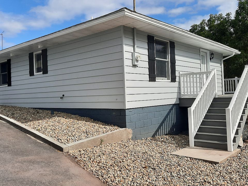 This totally remodeled home is located in a quiet, picturesque small-town with friendly neighbors. Entering the home you will find a spacious foyer with tiled floor and a large storage area with modern style, french doors which lead into an open concept floorplan. Entering the living area you will find a bright, open livingroom/ dinning room area with beautiful,low maintenance modern flooring. This homes spacious kitchen offers new stainless-steel refrigerator, microwave, sink and island with a table seating of 2-3. The two cozy bedrooms have ample closet space and new carpeting. The large bathroom has a tub/shower unit, sink vanity and cabinet, and private toilet. The bathroom also houses a full size new washer dryer set, shelving and large linen closet. Outside, you will find the showcase of the house, a large wrap-around newly constructed trex deck with a private view of the forest. Off street cement parking for 2 cars is also included with a side yard. Close proximity to general store shopping, post office, restaurants, walking paths, backery, library and churches. Water, sewer, trash included in rent. Lawn maintenance is also included, snow removal is not. No smoking No cats Small animals are at the discretion of the landlord.