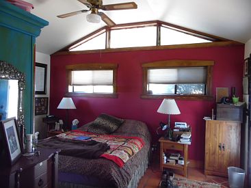 This hidden gem has many many interior & exterior features which include a beautiful adobe wall with custom entrance gates, leading to a lush private courtyard with beautiful flower beds and gardens. Garden has numerous fruit trees including, apricot, two peach trees, two cherry trees, an apple tree, grapes, artichokes, a strawberry patch and an herb garden. Exterior features include 3 out-buildings - a barn, a building currently used as an art studio, and a storage building that may be used as a guest house, a dog run, chicken coops and mature trees on nearly 5 acres. The main house has beautiful woodwork, saltillo tile and hardwood floors, and custom tile accents throughout. A custom barn door feature can divide large living room area into third bedroom with en-suite bathroom, with french doors leading to beautiful deck with expansive views. Can easily be second Master. House is well suited to passive solar. Includes 3-acre-ft. of water rights.