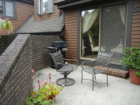 Spacious end unit A model in The Ridge. Hardwood floors throughout, updated kitchen w/ granite counters and SS appliances. 1st floor laundry. Large living room with cathedral ceiling, gas fireplace. First floor den has sliders to front patio with privacy wall. Second floor master suite with several closets, cathedral ceilings, full bath and skylight. Second bedroom also has cathedral ceiling, ensuite bath, walk in closet. Full basement with french drains. Neutral decor and move in condition.