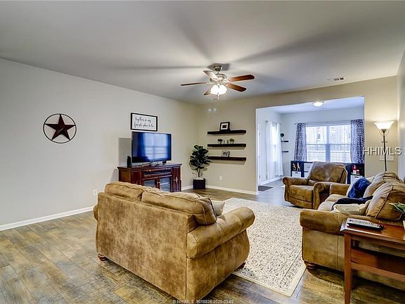 Desirable open floor plan featuring a sunroom and flex room. This home has all the features of a new home and more!... Neutral grey walls, on-trend wide plank wood floors, ceiling fans, and a fenced yard. Enjoy making meals in the spacious kitchen with granite countertops, an island, and pantry closet. The dining area is conveniently located between the great room and kitchen - the perfect set up for everyday living and entertaining. Other great features include a tankless water heater, security system and pull-down attic stairs with partially floored storage space. Zoned for River Ridge Academy (K-8) and just steps from the community pool!