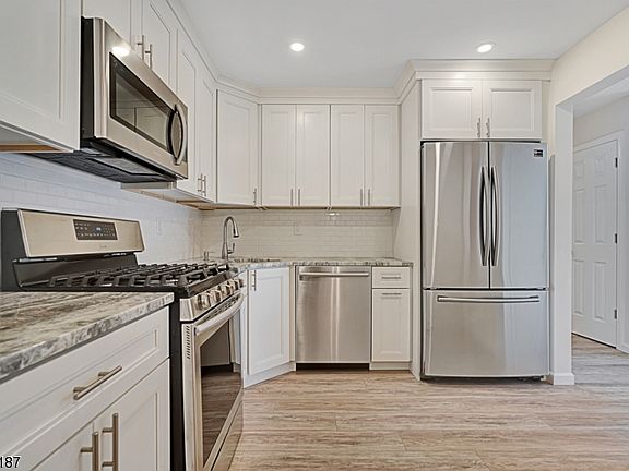 Fall in love w this fully updated ground floor two bedroom, two bath condo with trendy laminate floors, white kitchen, patio and more in Society Hill! Beautiful landscaped community and wooded views! Open concept living with sliders from the living room leading to the relaxing patio. Stylish track lighting in living room and chandelier in the dining room. Eat in kitchen offers stainless steel appliances, granite counters, breakfast bar and plenty of wood cabinetry. Master suite with custom designed walk in closet and chic bath with over-sized shower. Additional bedroom with double closets and new bath. Exceptional location close to a full array of shopping, rec, parks, restaurants and highly rated schools. Commuters are close to trains to NYC and Routes 78 and 287. Community amenities include a Clubhouse, pool, paths to stroll or bike, and tennis, bocce ball and basketball courts.