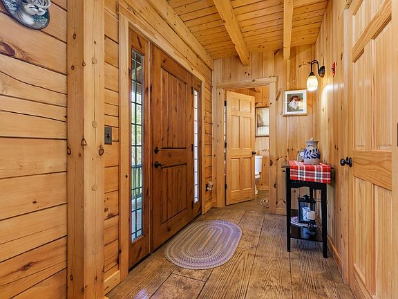 Kittery Point - Custom log home on 11 acres of privacy. This turnkey home has lots of "bells and whistles". Nicely landscaped yard that leads to the farmers porch, with an impressive front door. The spacious foyer leads to the open concept living, dining and kitchen area. Soaring ceilings, exposed beams and sunshine accentuate the massive stone hearth with woodstove. The kitchen features stainless steel appliances, wrap around bar, huge refrigerator and a large walk-in pantry. First floor primary bedroom has a generous walk-in closet with laundry and a full bath. Upstairs has two additional bedrooms and a bath, with a hall that looks down to the great room. The lower level boasts a family room and separate workout room, in addition to a great storage area. The outside is remarkable: new expansive deck with a hot tub that overlooks the far-reaching acreage. What a place to relax and enjoy nature! There's more! Separate heated workshop or storage for your outdoor toys, above ground pool and even a chicken coop. Don't miss this opportunity! Showings start at the open house on 4/29 from 9AM - 11AM.