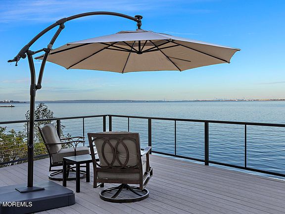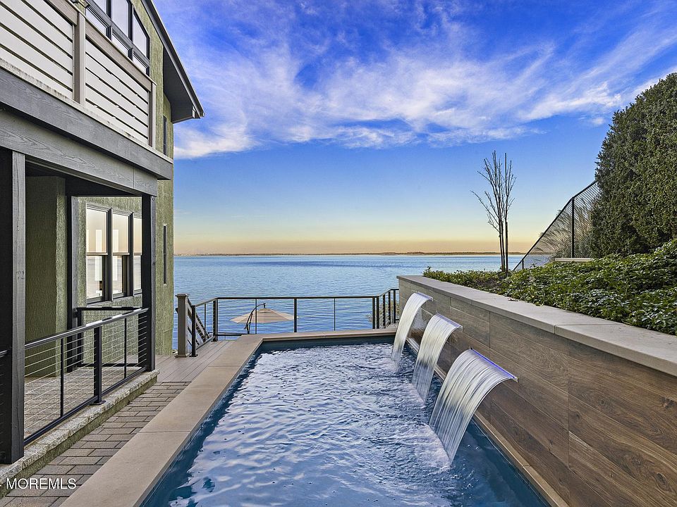 Surround yourself in chic modern luxury in this elegant, secluded, nature escape. Relax and enjoy being immersed in this unique waterfront oasis with views of NYC, Sandy Hook, and beyond. This high efficiency home uses renewable energy, and has been meticulously maintained. An entertainer's delight offering comfortable living spaces, two high end kitchen areas, multiple decks, a skywalk connecting the garage to the home, and a gorgeous gunite heated, saltwater pool with a lighted waterfall feature. Proximity to AH harbor, 5 minutes, NYC via ferry in 45 minutes, a stones throw from summer out of the city. Explore nearby local and historic sites such as Henry Hudson Trail and Springs, Lenape Woods Nature Preserve, Hartshorne Woods Park, Mount Mitchill Scenic Overlook, and Popamora Point.