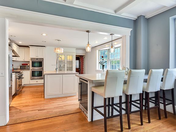 This 1860's Colonial home has undergone a stunning transformation, bringing it up to date with modern amenities and style. The kitchen, designed for hosting parties, is a highlight of the house. With its gorgeous updates, including high-end stainless steel appliances, it's sure to impress any home chef. The beautiful hardwood floors add warmth and elegance to the space, and the light fixtures are not only functional but also envy-inducing.
