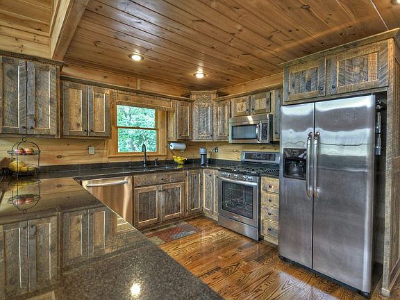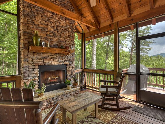 Pristine prowl front cabin in the heart of the Aska Adventure area! This 3/3 well maintained home offers a large great room w/ a wall of windows to take in the year round mountain views, a wood burning stone fireplace & an unbeatable location! Spacious kitchen offers custom cabinets, ss appliances & granite countertops. Step outside to find a screened party porch w/ wood burning fireplace & the perfect spot to enjoy your morning coffee. Main level features a spacious bedroom & bathroom w/ double live edge sink, & shower/tub combo. Large master suite offers a screened balcony, walk in closet, double vanities, & walk in tile shower. Finished terrace level offers additional great room, wet bar, bedroom & additional bath. Outdoor entertaining made easy with wrap around deck, mature landscaping, fire pit area & hot tub! Private trail to a tree house & slack line. Perfect for full time living or vacation rental!