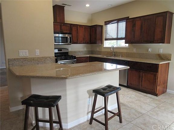 Like new home on cul-de-sac built in 2014. Great kitchen, (refrigerator included) large tiled shower in master bedroom. Both bathrooms have additional custom made cabinets. Nice shutters on windows. Large monitor in garage can be hooked up to master bedroom TV. Garage has custom roll down screen and door to turn garage into cozy lounge area. Great backyard (low maintenance) includes pergola, children's play set and storage box. Very close to Safeway center on East Ave. Must see! Won't last!