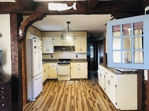 Welcome to Pinehill Acres, far North New Bedford! This spacious, well maintained Cape is situated at the end of a quiet street on a private/wooded lot. This 1,600sf+ home has been well maintained & has many recent updates! The home maintains a rustic feel with added benefits such as all new triple pane vinyl windows, new sliding door, new flooring in the breakfast nook/mudroom, brand new forced furnace/forced A/C, and newer roof! Property features include: informal dining room/eat in kitchen (that could also be a breakfast nook or mudroom), formal dining area, living room, spacous kitchen, half bath, and first floor bedroom all on the main level! The 2nd floor has 2 more large bedrooms (the master bedroom having dbl closets) with gorgeous original hardwood flooring throughout & full bath. The spacious yard is well manicured and landscaped for easy maintenance & entertaining! Bonus:1 car garage with storage above! Do not miss out on your chance to live in this desirable neighborhood!