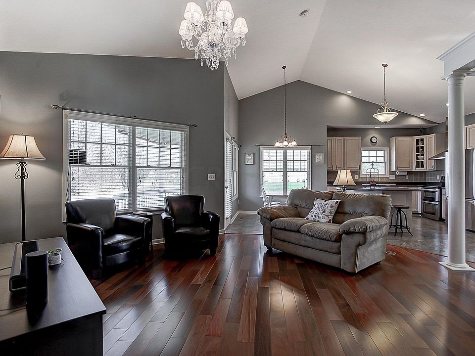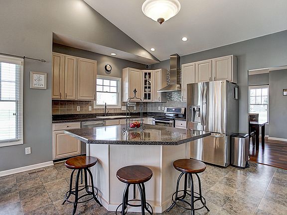 Explore this beautiful one story home, this property showcases a large and open floor plan with modern and custom updates throughout. Situated on over a half an acre lot, have your coffee off of the back deck and enjoy the fenced in property with a custom storage barn. The large vaulted great room is showcased coming right off the kitchen so you can enjoy entertaining guests at you leisure. The master bedroom has a one of a kind floor plan with both a large master closet and an over sized master bathroom with a jetted soaking tub and separate shower. With an open floor plan and all of the amenities including formal dining room, a first floor laundry, fireplace, eating area, and a full basement with egress windows and tall ceiling this home will not disappoint.