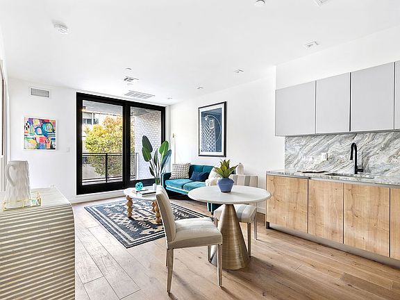 44 Box has arrived! Greenpoint’s finest new Boutique Condominium is finally here! Unit 4A is a 2 Bed/1 Bath, Floor-thru apartment with dual private balconies with a loft-like feel with dual exposures. Excellent light, combines with modern finishes to makes this an amazing opportunity to own in Greenpoint’s newest and finest addition. Washer/Dryer included in apartment. Parking and Storage available! Welcome home to this artisan crafted, exquisitely executed 6 story elevator condominium building. With 16 unique 1-2 Bedroom units, all with private outdoor spaces, there is truly something for every home buyer. The 44 Box Street experience begins the moment you enter, with a private set-back entrance replete with gorgeous landscaping and a one-of-a-kind building mural by renowned local artist Alex Russell. The building offers indoor and outdoor private parking for purchase and private storage is available as well. Swoon worthy features include wide-plank, white oak flooring, Fisher & Paykel appliance package, double-paned Pella windows crafted carefully with a focus on the building’s clean aesthetic. Each residence offers a blend of contemporary yet timeless finishes, making for an amazing investment opportunity or a place to truly call home. 44 Box Street is set in the heart of Greenpoint, Brooklyn with immediate access to local favorites such as Greenpoint Beer & Ale Co., Glasserie, Saint Vitus Bar, Milk and Roses, Le Fanfare, Lobster Joint, Brooklyn Lantern, Sweetleaf Coffee, Bakeri… & the list goes on! The proximity to the Waterfront, G train, 7 train, & East River Ferry will make your commute a breeze. And should you decide to stay in, there is more than enough space and private outdoor reprieve for the life balance part of the equation.