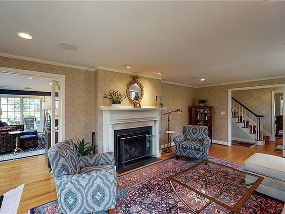 Beautifully appointed Colonial with 6 bedrooms and 4 ½ baths surrounded by stunning gardens. Upon entering the Foyer, you are welcomed by the sun filled Living Room w/bay window, crown moldings, gas fireplace & charming Dining Room accented by wainscoting and built-in cabinetry. The renovated Kitchen is enhanced by granite countertops, stainless steel appliances which includes a Viking Stove. The Kitchen space opens to a dining area and flows nicely into the spacious Family Room w/ a gas fireplace, back stairway, and bar area. The Family Room provides access to the welcoming outdoor space. There are Hardwood Floors throughout home. Located on 2nd floor are 5 bedrooms & 3 full baths. The Primary Bedroom is appointed with and double closets, a full bath which includes a walk-in shower and linen storage and double closets. The third level offers the 6th bedroom and full bathroom. Finished lower level includes a Bonus Room featuring a fireplace, wet bar, home theater, and exercise area. The Backyard w/ Covered bluestone Porch, patio, and sitting wall are perfect for entertaining. (Additional Features: New Cedar Fence, LED Lighting surrounding the yard, dog fence, indoor/outdoor sound system, energy saving Anderson Windows, 5 zone heating/cooling system, renovated bathrooms. (Town Property Card is inaccurate