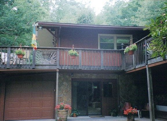 MOTIVATED SELLER! Private 2 level home, surrounded by native rhododendren on 3.25 acres. Sit on the deck or patio and listen to the serene sound of the nearby stream. Decks on 3 sides of the home. Sunroom, 2 bedrooms (carpeted), bath, laundry room, kitchen/great room, small office, 1 car garage on main level. Underground level provides separate entrance to mother-in-law living space w/1 bedroom (carpeted), bath, kitchen and den. Private heated workshop, 1 car garage, private patio beside stream. Utility shed w/lights & electricity. Private drive, shared spring fed well, private sewer/septic