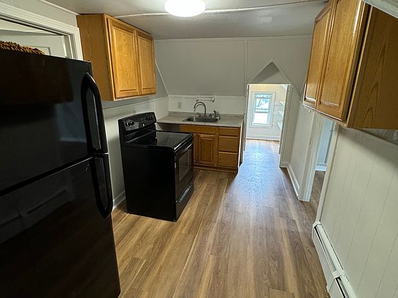 Completely renovated apartment. New kitchen, new bathroom, new luxury vinyl flooring. Small pets allowed. 3rd floor unit with 1 BD, 1 Bath. Eat-in kitchen with small pantry room. Very quiet area, plenty of off street parking. Washer and Drier in basement. Photos available soon. Tenant is responsible for electric and heat.