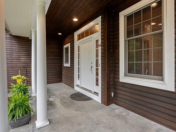 Nestled on a wooded lot just shy of an acre, this beautiful home offers a peaceful retreat surrounded by nature.The covered front porch sets the tone inviting you to relax & take in the tranquil views just beyond your doorstep. Come inside to discover an expansive layout ideal for both everyday comfort & effortless entertaining.The heart of the home is the generous kitchen filled with cherry cabinetry & a spacious eat-in area perfect for morning coffee. The formal dining room offers an elegant space for gatherings while the spacious living room features direct access to the back deck through sliding glass doors.Upstairs you’ll find four bedrooms including a lovely primary suite with its own private bath & walk in closet. A second full bathroom serves the additional bedrooms while a breathtaking home office with cherry and birds eye maple cabinetry provides a quiet and inspiring workspace.Roof 2023 AC 2022 HW tank 2023 (APO). Freshly painted and ready for it's new home owner