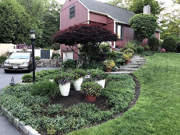 Situated on a beautiful landscaped lot this home offers an open floor plan with a cathedral ceiling fireplaced Living room opened to a dining area and kitchen. 1st floor bedroom could be first floor master with the new full bath with walk in shower. Upstairs bedrooms have oversized windows and a large bathroom. Pull down steps allows extra storage in the floored attic. The basement with new carpet offers a great family room and a separate laundry area with storage and access to the garage. .Wait there is more...Walk onto the 2 tier oversized deck with awning and gaze onto your beautiful large fenced in back yard. The owners green thumb and vision can be seen through out. Storage sheds add to the ambiance, plantings galore . This yard could be used year around especially with the outdoor lights. Come relax on the deck and enjoy your private oasis