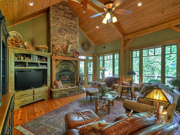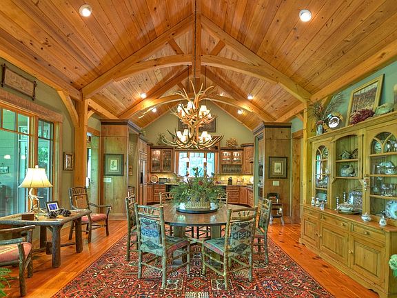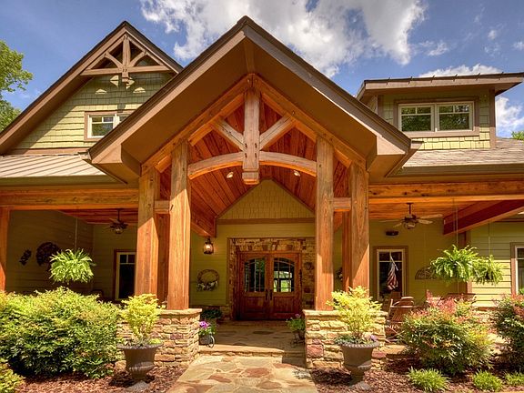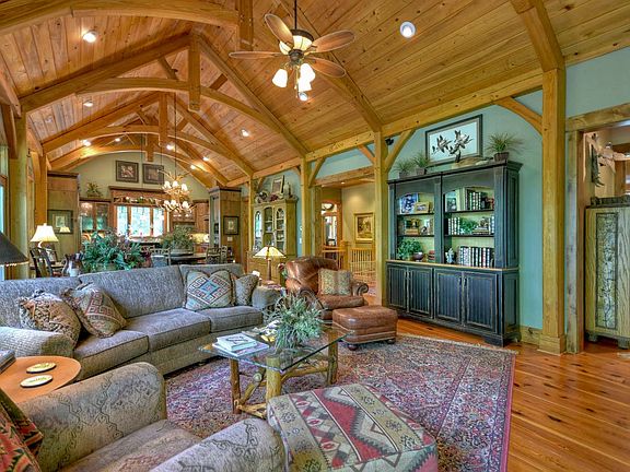 ONLY ONE OWNER AND FIRST TIME ON MARKET!! This magnificent mountain estate is a custom built timber frame designed home offering an open floor plan w/gourmet Chef's kitchen, SS appliances & granite countertops, large walk-in pantry, spacious dining area and great room w/stacked stone wood-burning fireplace, master-on-main suite with custom tiled bathroom, office/library on main level, sitting area & sunroom overlooking the pasture area, expansive outdoor decking, screened in porch w/fireplace, finished terrace level w/wet bar & fireplace, 3-car detached garage w/finished bedroom or multi-use room, bath and additional laundry above, 1-car drive-under garage in basement w/extra large storage areas, pasture w/4-stall barn & tack room, paved road access, private location in gated community. So many features to name so ask about a full detailed features list and see the virtual tour link. You will not be disappointed upon arriving to see this special place!!