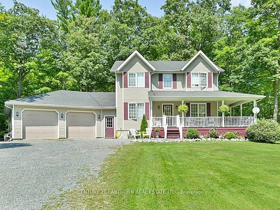 Looking to move your family to the country? Better not miss out on this one! Check out this 4 bed, 4 bath home on almost 2 acres, and located less than 5 minutes to Madoc on a hardtop road. An inviting wrap around covered porch is a great spot to enjoy the tranquility of rural living, plus has a private back yard deck backing onto a forested area. Main floor features hardwood floors, kitchen/dining area with a center island, living room, plus an office or possible 5th bedroom if needed. 3 bedrooms on 2nd level including primary with walk in closet and 5pc ensuite. The finished basement boasts the 4th bedroom, full bath plus a rec room with a bar, and a woodstove surrounded by bricks from the historic Madoc Hotel, which was built in the 1800's and burned in the 1990's. The attached oversized double garage has access to the kitchen or basement and offers an extra storage area and 2 man doors. Drop your boat at the public launch at the bottom of the hill and enjoy great fishing, watersports or boating up and down Moira Lake and River. Trail riding your thing? Close to the Trans Canada Trail for endless miles of ATV or snowmobile riding. Don't forget the Skatepark/Splashpad in Madoc for the kids to enjoy. Conveniently located 2 hours to Toronto or Ottawa and 30 minutes to Belleville and 401. Need a quick closing? No problem!!