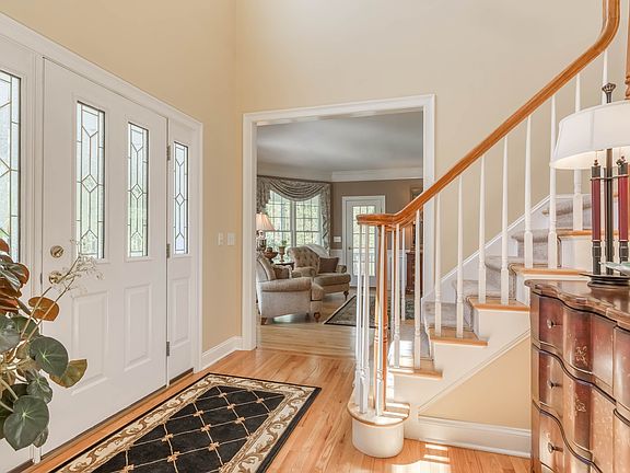Welcome to the perfect home in Heritage Ridge Estates-a spectacular subdivision of luxury homes. This stunning 5 BR, 3.5 bath home is situated on the prime cul-de-sac location abutting 5 private wooded acres. This beautifully appointed home has many special updates & architectural features. It has an exceptional open floor plan which includes a double story foyer & an elegant round turret room. A gorgeous kitchen has granite counter tops, center island, pantry, tumbled marble & stainless appliances. The kitchen opens to an impressive family room which boasts a cathedral ceiling & gas fireplace. A first floor home office/study & powder room. Pretty pillared dining room with double crown molding. Gleaming hardwood floors. French doors lead you into a beautiful screened vaulted sun-porch with ceiling fan. The formal living room has French doors to a wrap-around deck & covered front porch. The lovely Master Suite has a tray ceiling, huge walk-in closet & spa tub bath. Three additional spacious bedrooms plus a second floor laundry room. The finished lower level of the home has a 5th bedroom & a full bath. Huge recreation room & gym/den. Ideal for In-Laws or Au-pair. A huge deck overlooks a private backyard, deck & heated in-ground pool. Professionally landscaped property & manicured lawn. A 30x50 fenced & irrigated garden area. Other amenities include a whole house generator, surround sound audio system inside & out plus an irrigation system. A fabulous home for year round enjoyment!