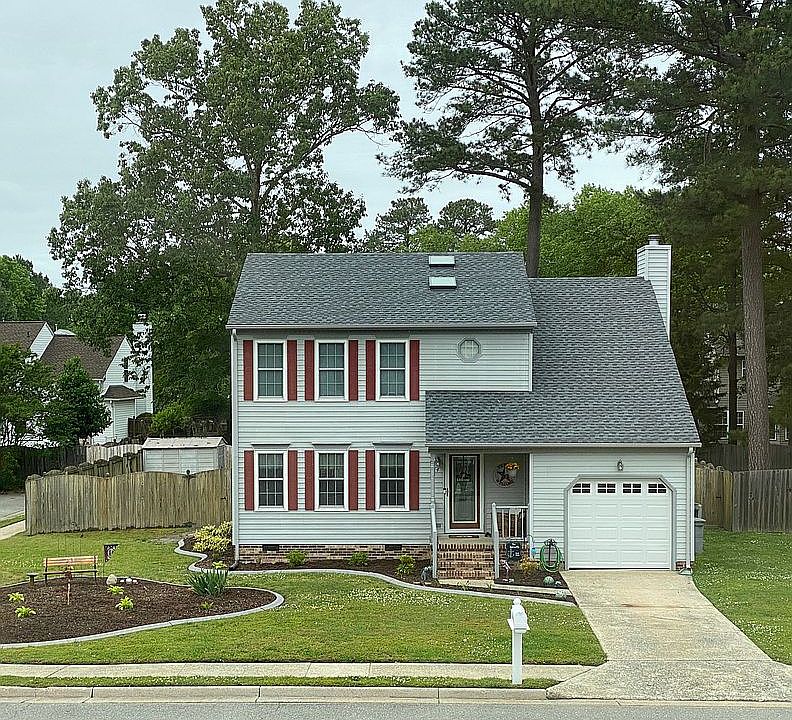 Located on a quiet street on a large corner lot, this beautiful 4 bedroom, 2.5 bath home features a nicely remodeled kitchen with new granite counter tops, stainless steel appliances & an eat-in area with vaulted ceiling, spacious dining/living rooms & separate family room with wood burning fireplace & beautiful French doors. Home also features nice size bedrooms, large master suite with walk-in closet & completely renovated master bath with custom ceramic tile & jetted tub, new roof, vinyl replacement windows, skylights, attached garage & privacy fenced backyard with gorgeous wrap around deck overlooking the pool!Just a short walk to Kraft Elementary school & only minutes from shopping, entertainment, I-64, NASA & Langley Air Force Base.