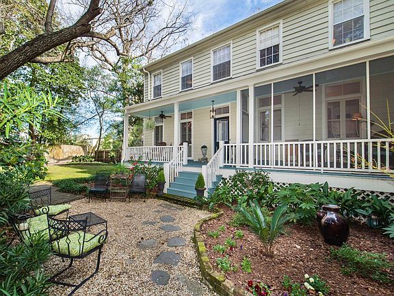 Circa 1834 KITCHEN HOUSE OF THE WILLIAM HENRY HOUSTON HOUSE. 44 Charlotte Street is on very high ground with no requirement for flood insurance. It's the ideal size, privately tucked away in the garden of the grand front house. With main rooms opening to the piazza and garden patio through four sets of tall French doors with transoms, this charming house is open and airy and superbly livable. Under a preservation plan guided by the Historic Charleston Foundation, historically significant details remain intact in original heartpine floors, exposed old Charleston brick, period mantels, windows and doors while well planned renovations provide sleek bathrooms, great storage, big eat-in kitchen, and laundry room. The neighborhood gathering spot is The Dewberry, and within 3 blocks is King Street, the Charleston Museum, the Gaillard, the Library, and Waterfront Park, as well as a drugstore, grocery store, salons, gyms and a renowned list of fine dining spots. No car needed in this wonderful walking neighborhood but there is off street parking too.