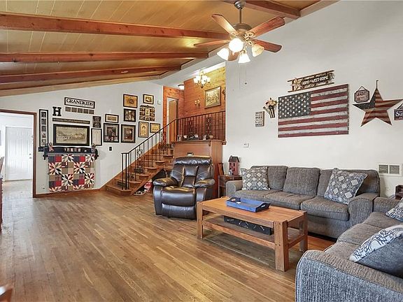 This very unique home goes on and on and on! It's much larger than it appears from the outside so be sure and check out all of the rooms (2nd half of home is a pass through via the garage). Ideal location just walking distance from Northwood Elementary School. Lots of unique spaces in the ranch stone home with fenced in yard and plenty of space between your neighbors. No HOA and comes with an extra driveway to park guests or RV/Boat. Large deck outback with sunroom which is currently being used as a workshop.
